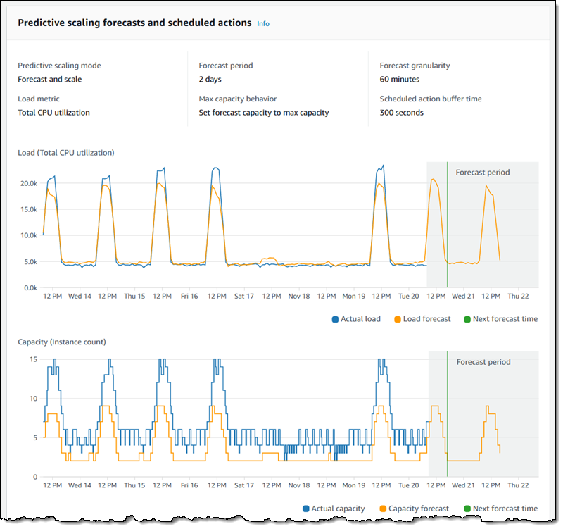 Setting the PredictiveScalingMode to ForecastOnly allowed AWS Auto Scaling start to generate pretty looking graphs using Machine Learning™!