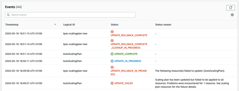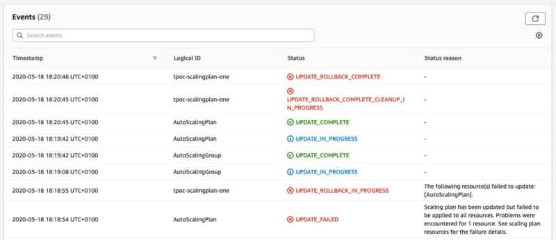 The following resource(s) failed to update: [AutoScalingPlan].